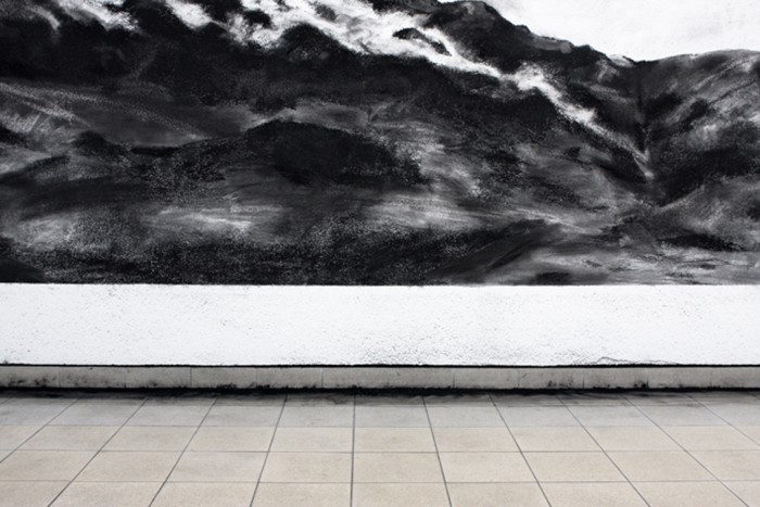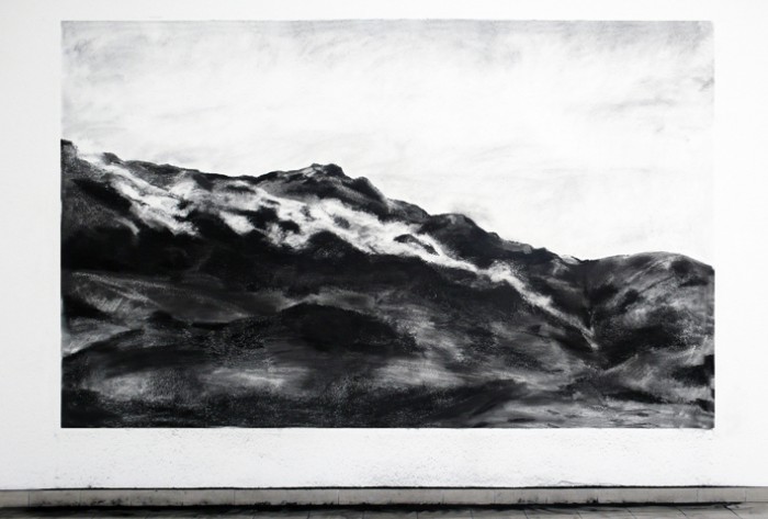 In the same room, in an equally nebulous large-format charcoal drawing, the Handhabung (Landschaft) [Handling (Landscape)] (2008), hidden in the fog behind the idyll of the almost romantic hilly landscape there lies the site of the USSR’s first underground nuclear experiment.